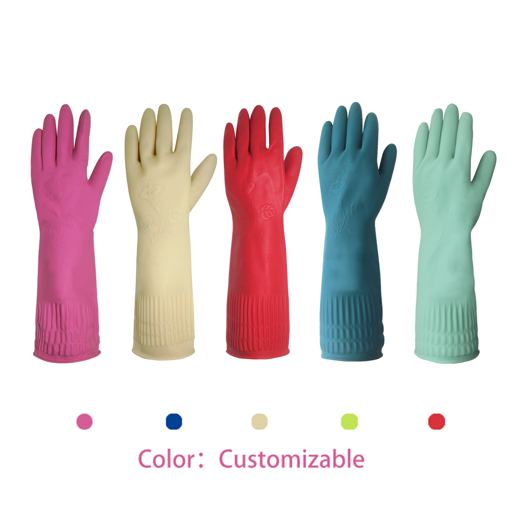 Multipurpose:Kitchen Cleaning,Dishwashing,Car wash,Indoor and outdoor cleaning,To prevent hand skin contact with corrosive liquids. Solid color gloves, lengthened cuffs,Make sure your hands and clothes are dry.Three sizes to meet the needs of different groups.